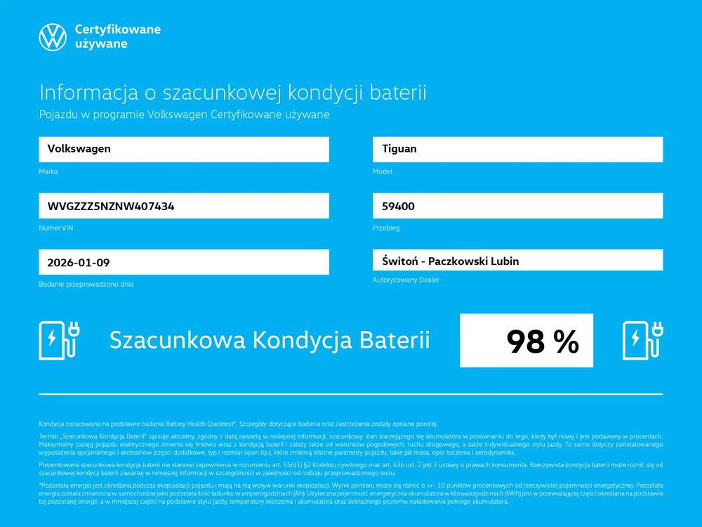 Cena podana w ogłoszeniu tj. 119 900pln brutto dotyczy zakupu samochodu w finansowaniu VWFS oferowanym przez nasz salon. W przypadku zakupu samochodu za gotówkę lub w innej formie finansowania (swój leasing/kredyt itp.), cena samochodu to 123 900pln brutto.
