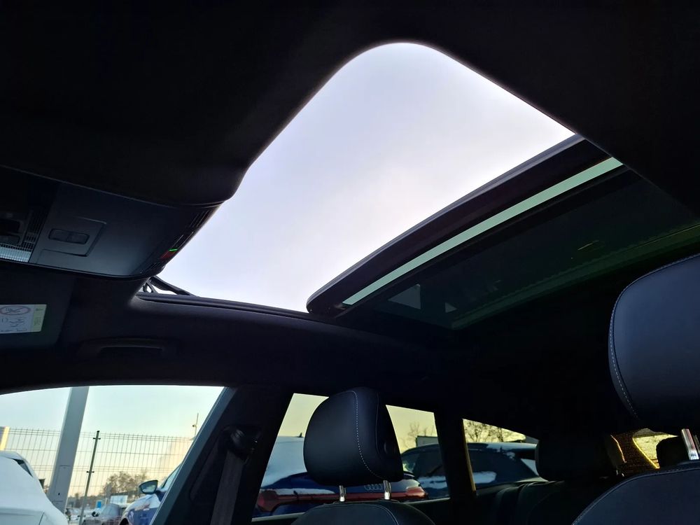 Dach szklany panoramiczny, elektrycznie otwierany i zamykany, z roletą