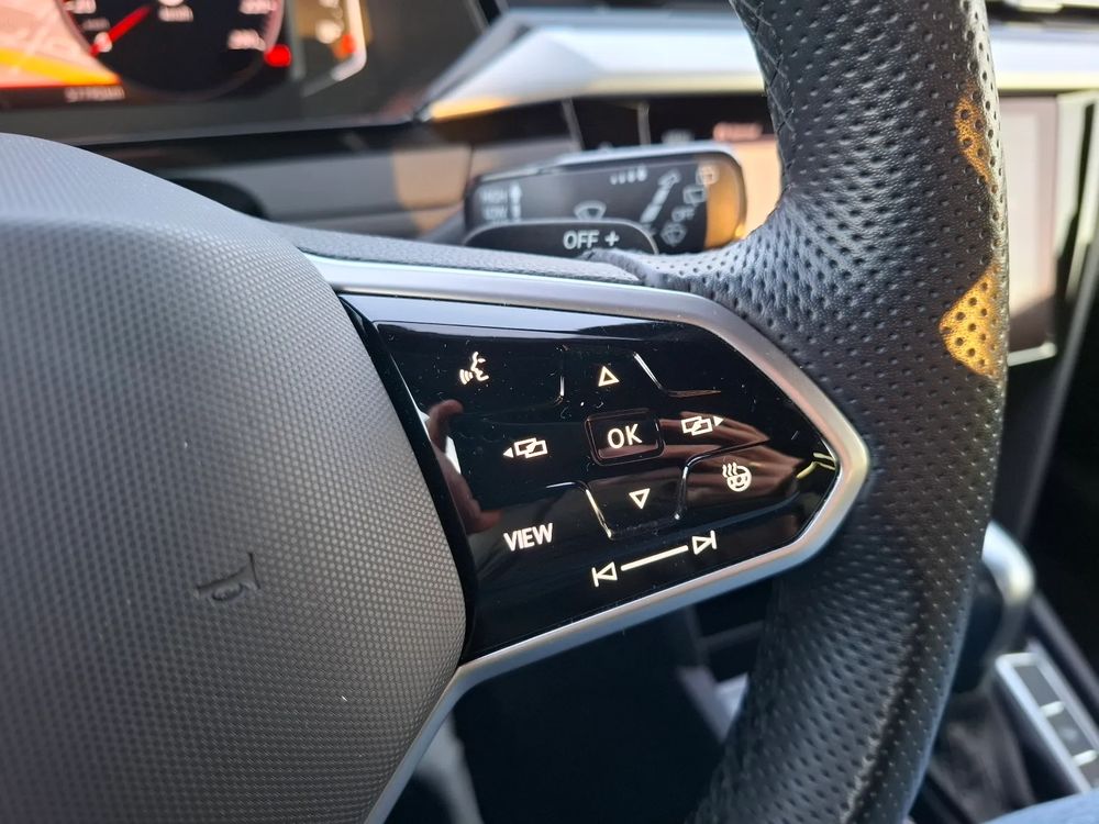 Sportowa kierownica 3-ramienna, multifunkcyjna, obszyta skórą, podgrzewana, z łopatkami do zmiany biegów
