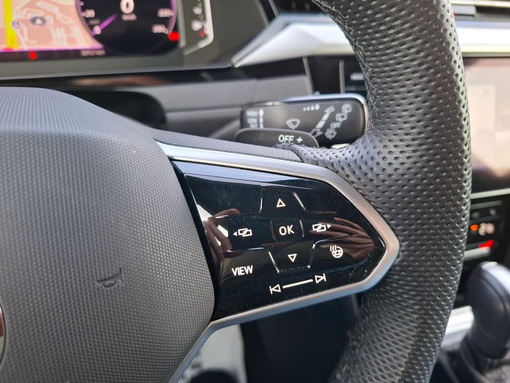 Sportowa kierownica 3-ramienna, multifunkcyjna, obszyta skórą, podgrzewana, z łopatkami do zmiany biegów