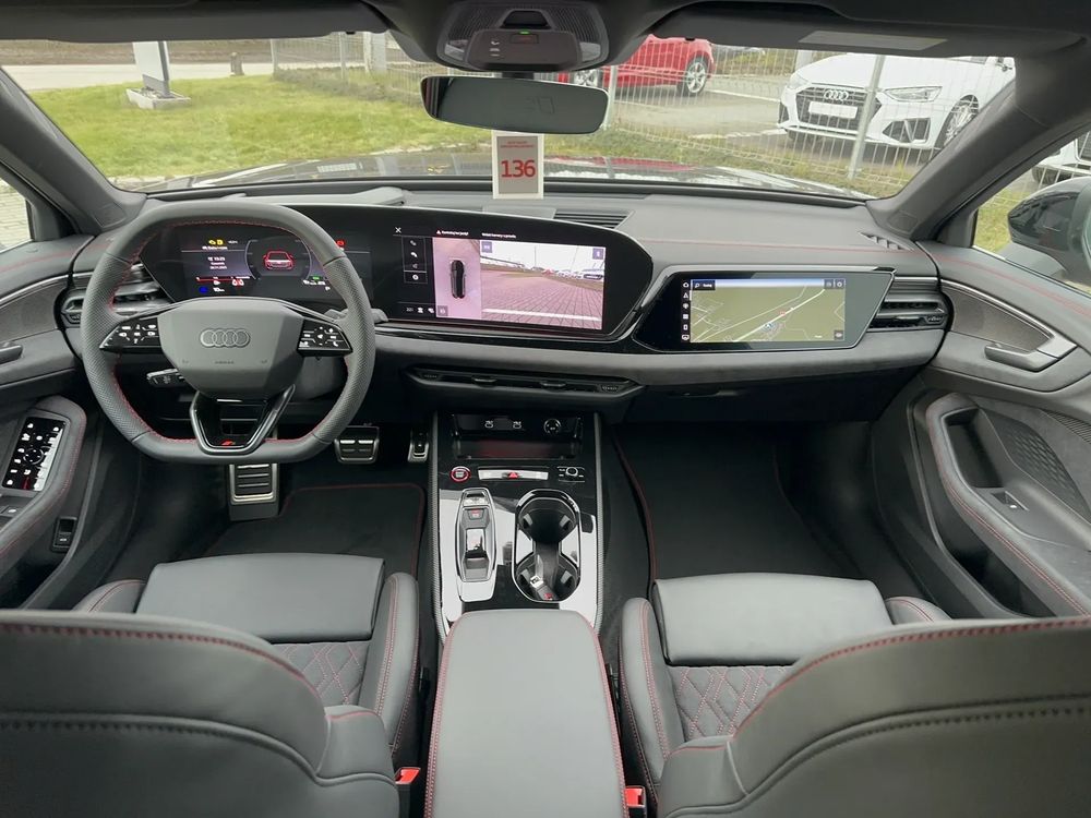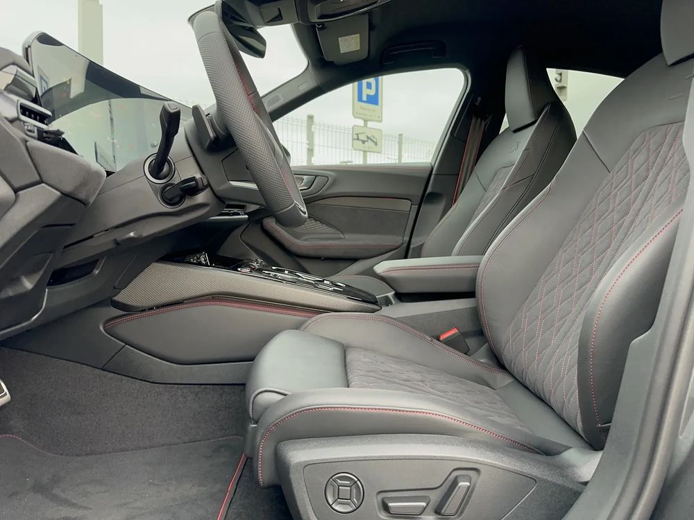 Pakiet Interieur S z siedzeniami sportowymi, kombinacja mikrofibra Dinamica/skóra w kolorze czarnym, czerwony szew Audi Sport GmbH
