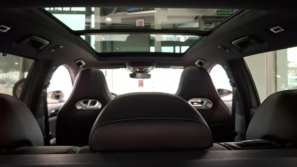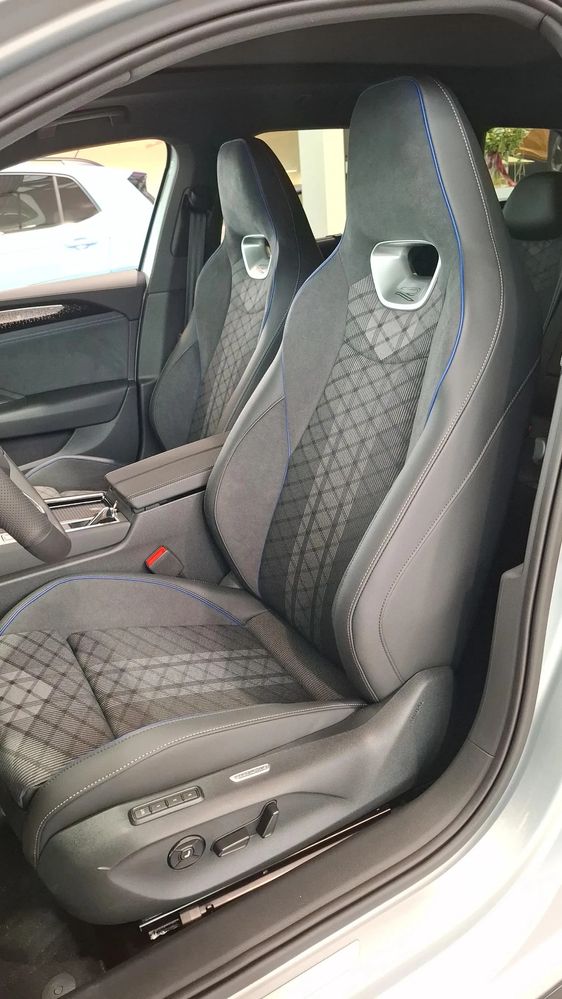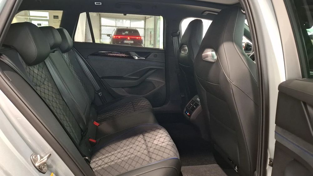Tapicerka: Tapicerka grafitowo-czarna z niebieskimi przeszyciami